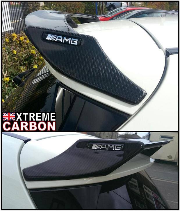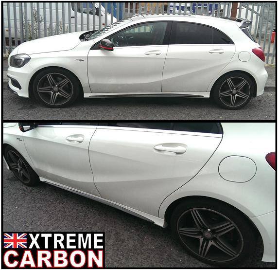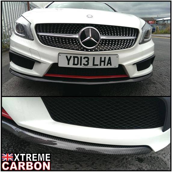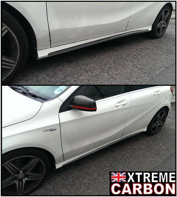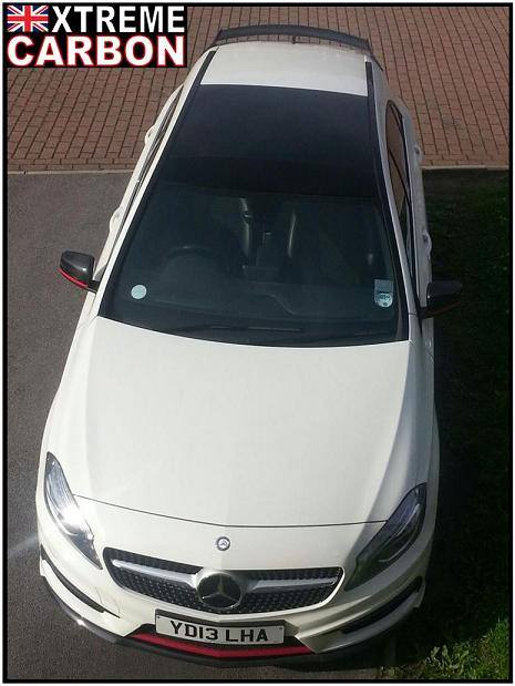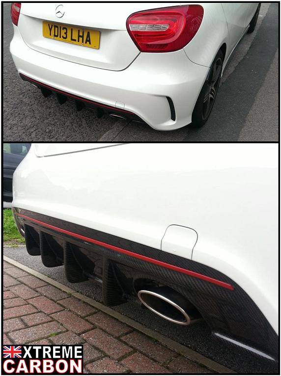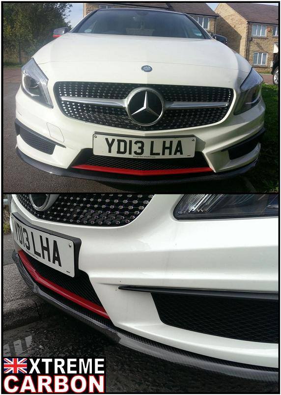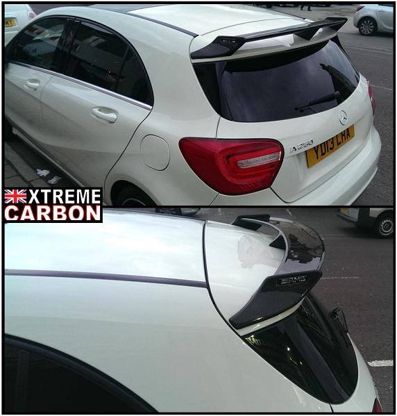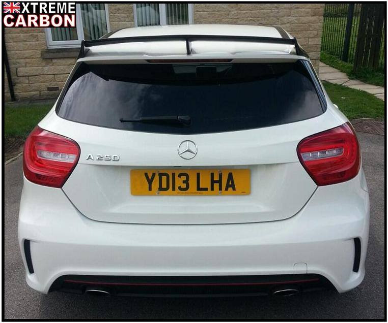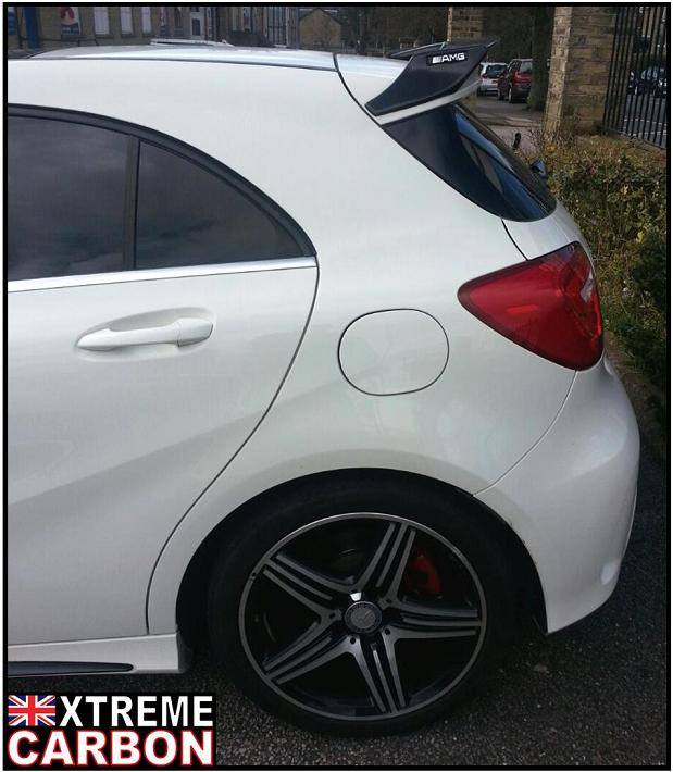 A Class AMG fitted with Xtreme Carbon 3 pc rear boot spoiler, front lip spoiler, side skirt covers, rear diffuser & mirror covers.