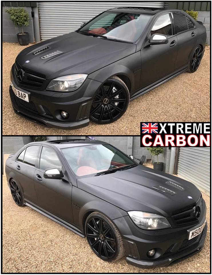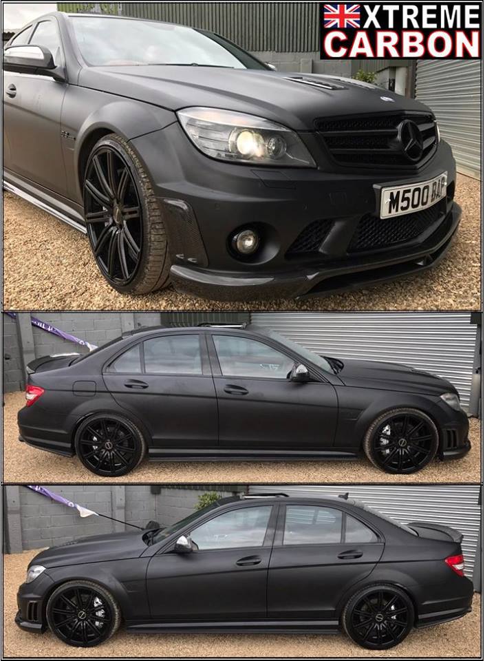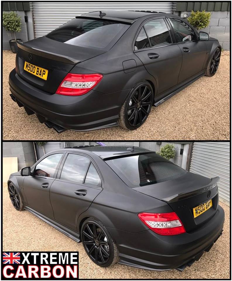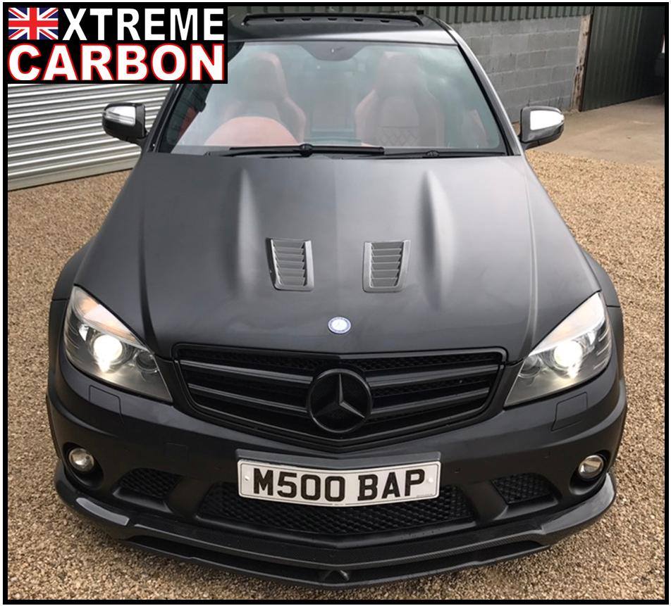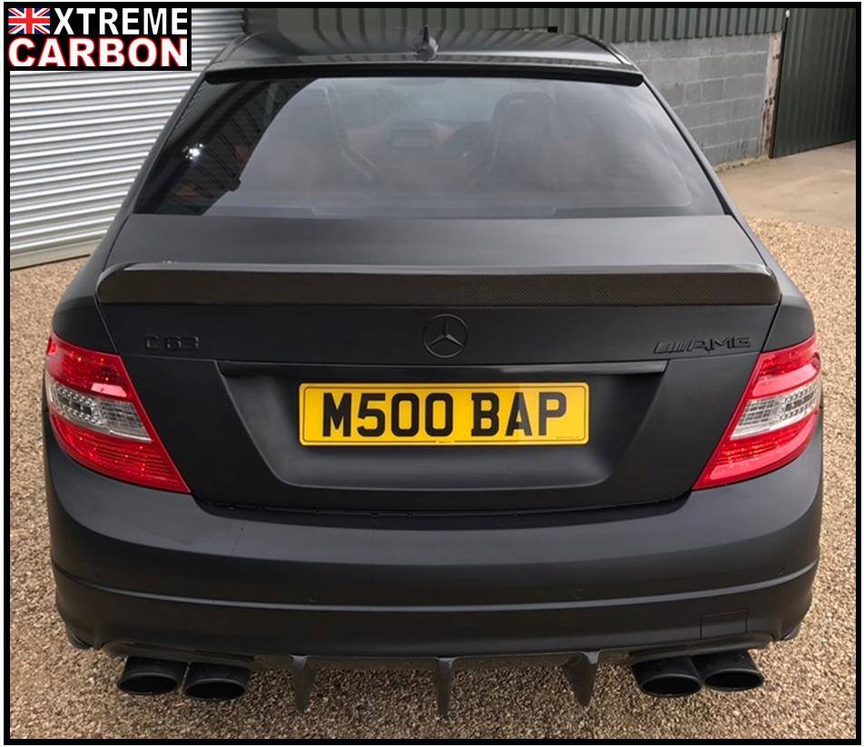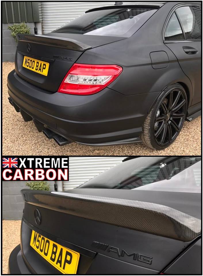 W204 C63 fitted with Xtreme Carbon C-style front lip spoiler, front bumper vents, side skirts & rear bumper extensions set, window top roof spoiler, DTM V-style boot spoiler & big fin rear diffuser