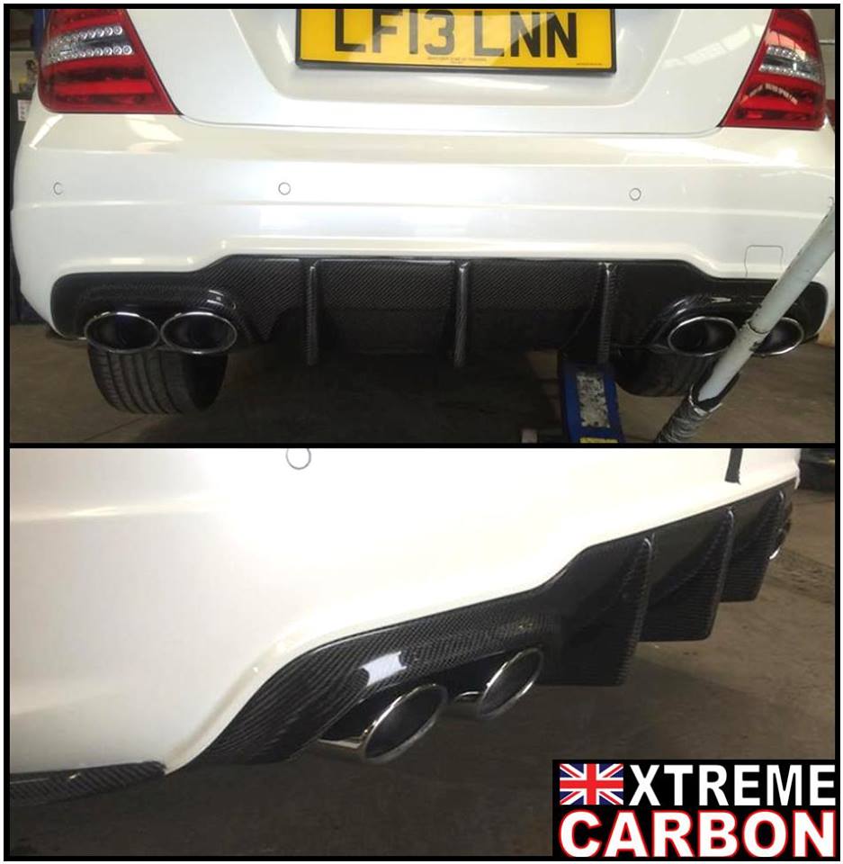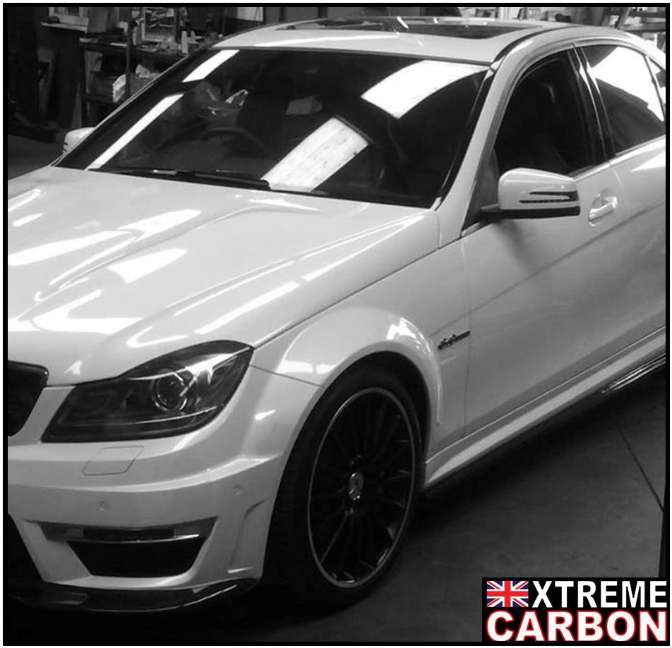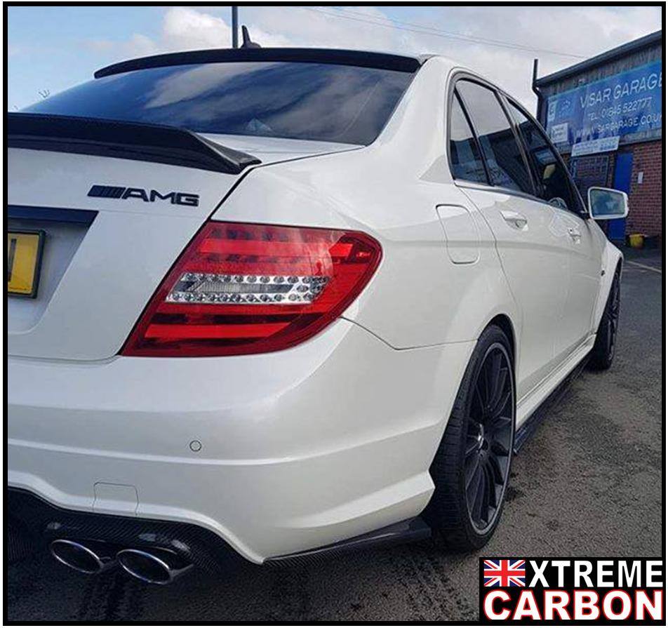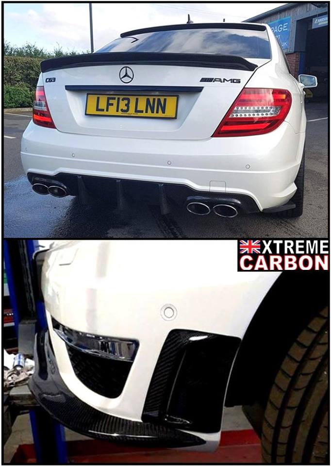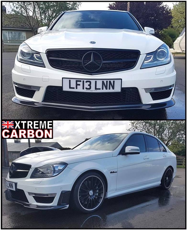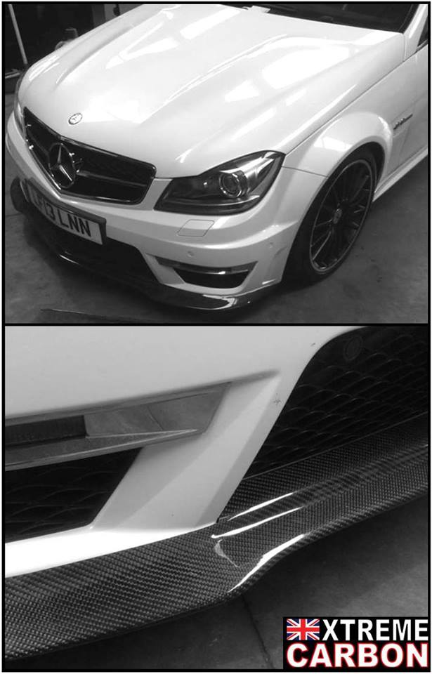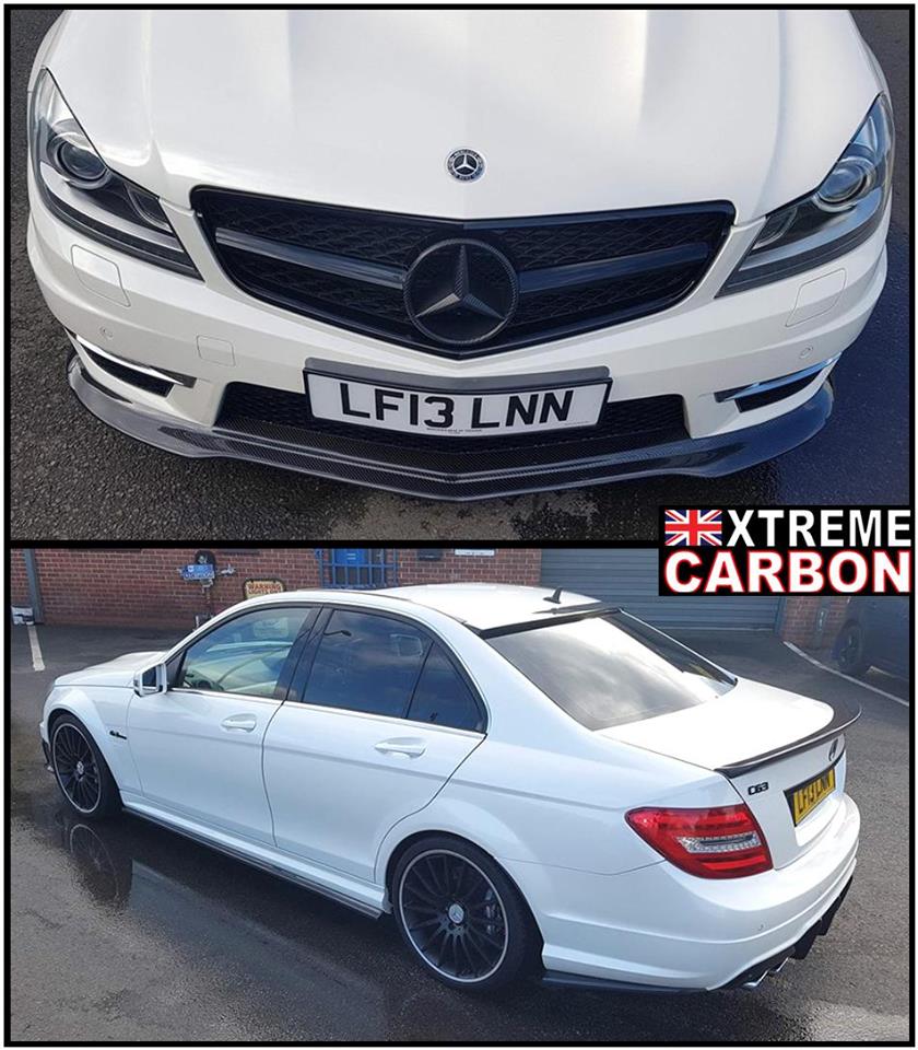 W204 C63 fitted with Xtreme Carbon black series front lip, front bumper vents, window roof spoiler, M-style DTM boot spoiler & Big fin rear diffuser.