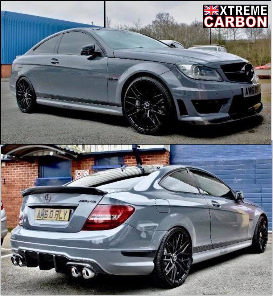 C Class W204 (18) W204 C63 fitted with Xtreme Carbon Black series front lip spoiler & M-style DTM boot spoiler.