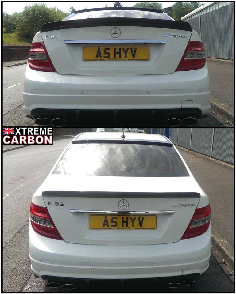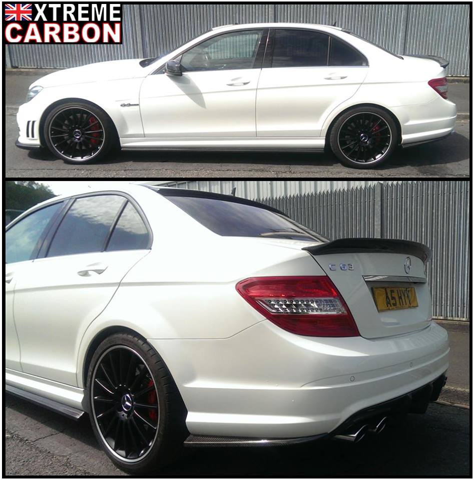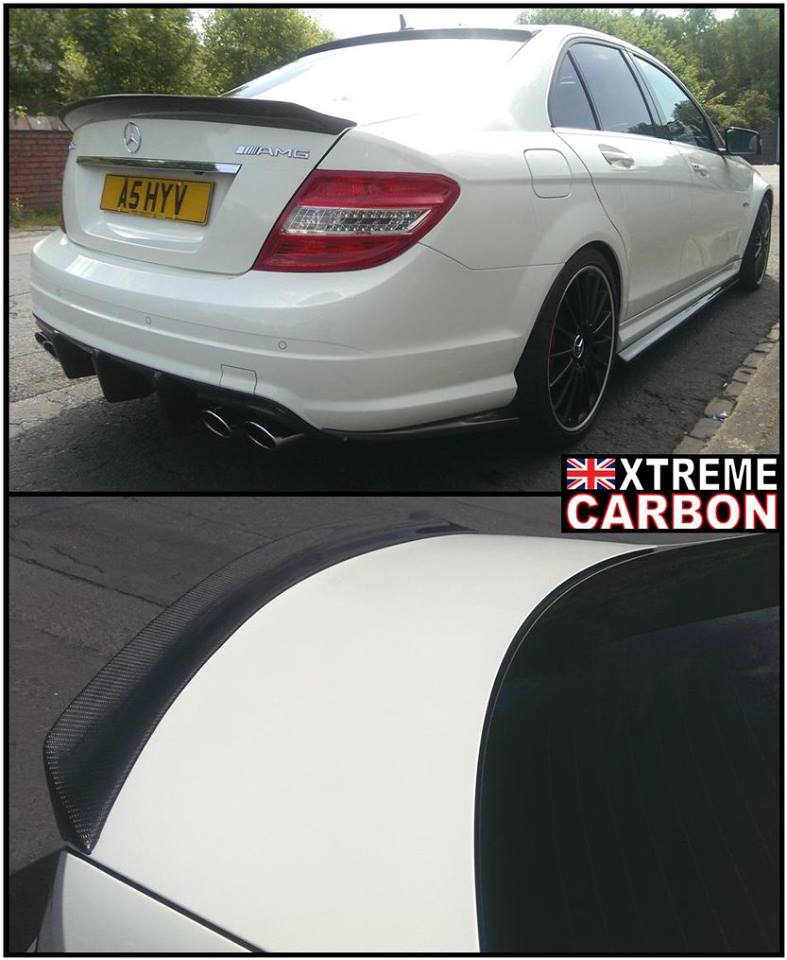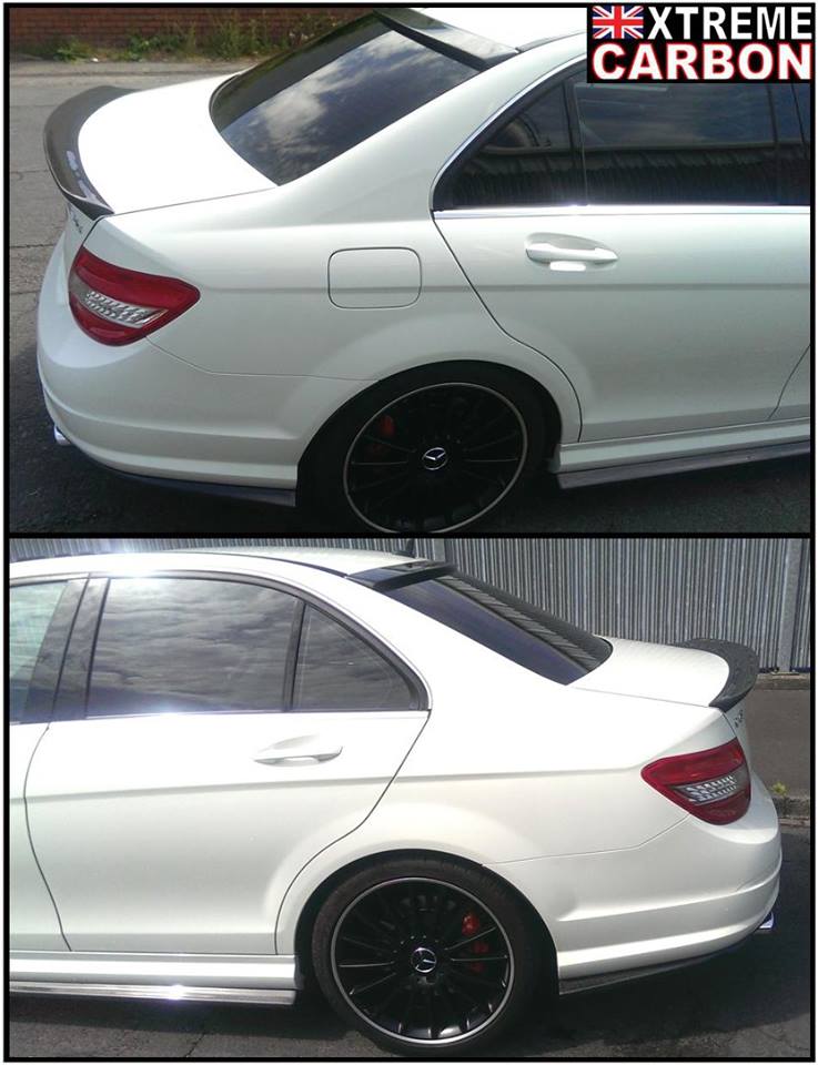 W204 C63 fitted with Xtreme Carbon AMG Motorsport front lip spoiler, side skirt & rear bumper extensions set, roof window spoiler, M-style DTM boot spoiler & Big fin rear diffuser.