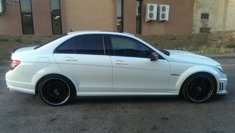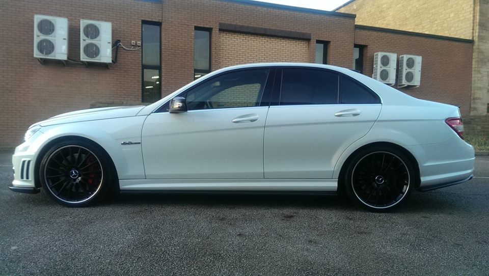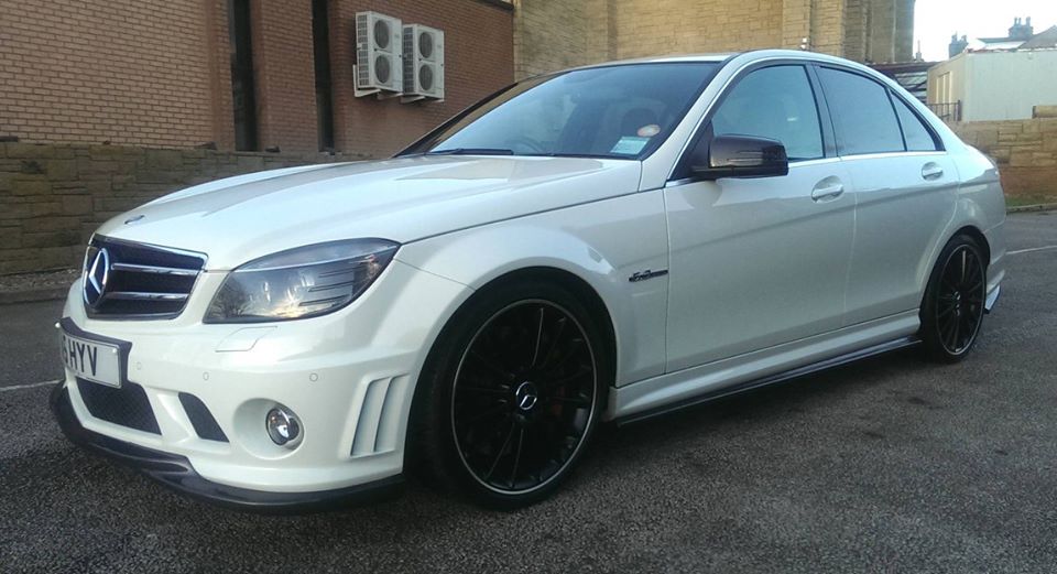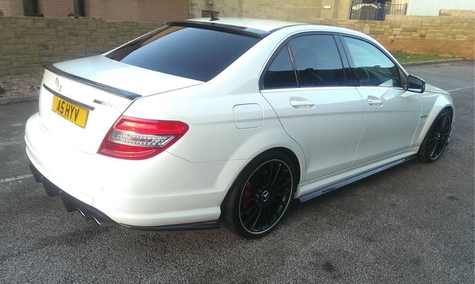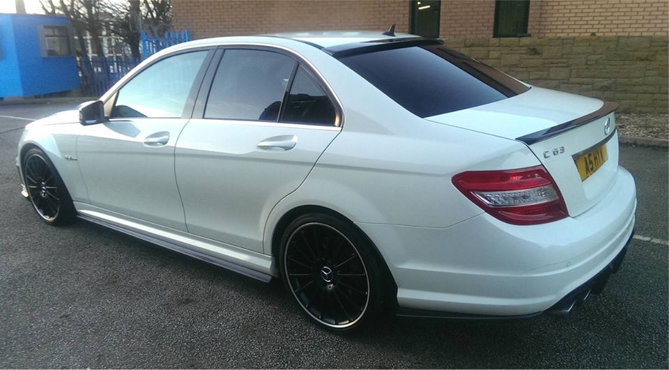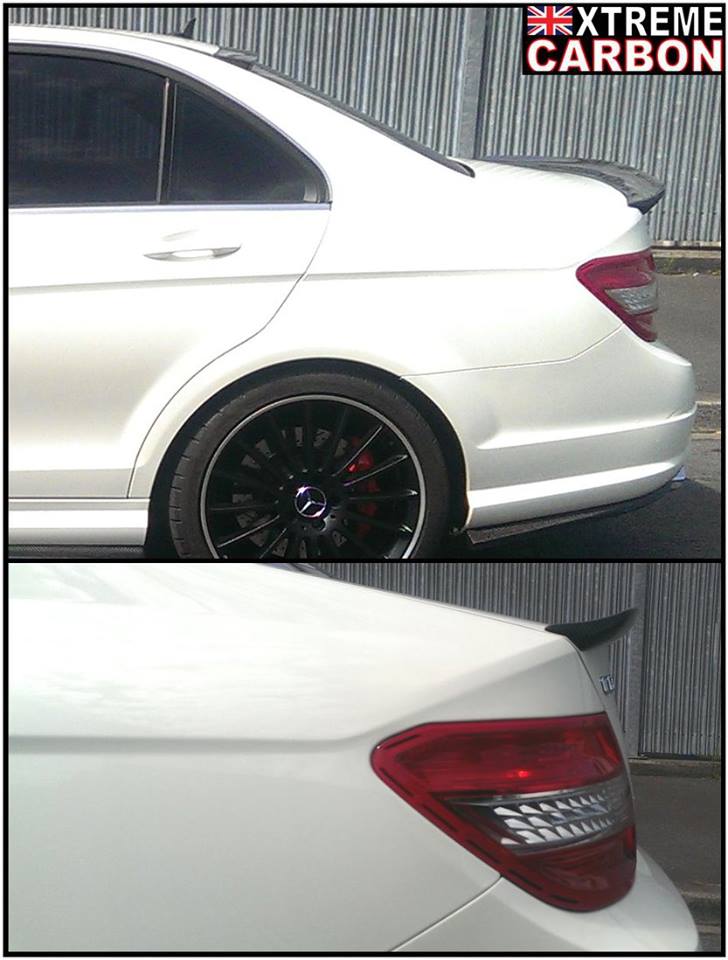 W204 C63 fitted with Xtreme Carbon AMG Motorsport front lip spoiler, side skirt & rear bumper extensions set, roof window spoiler, M-style DTM boot spoiler & Big fin rear diffuser.