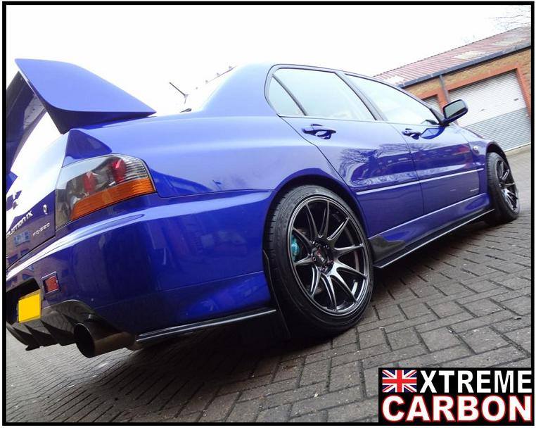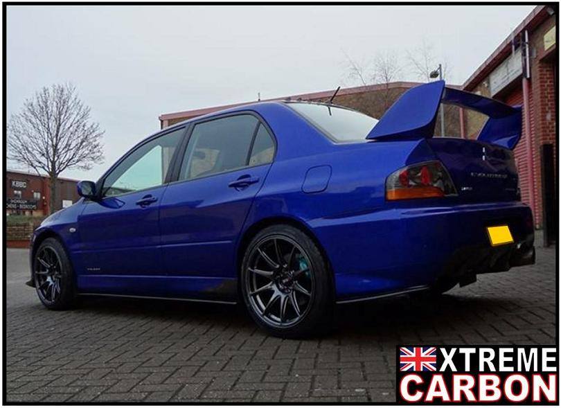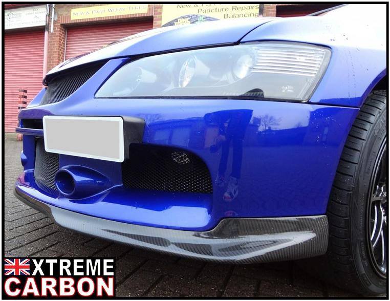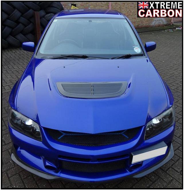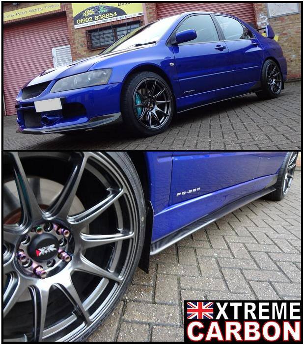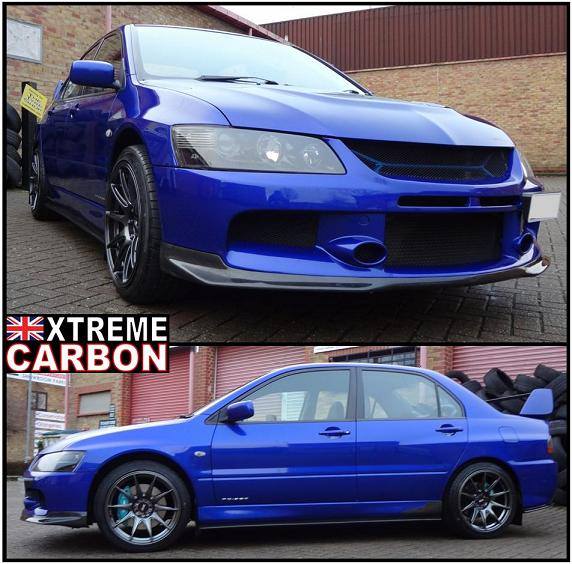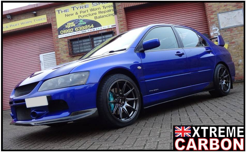 Mitsubishi Evo 9 fitted with Xtreme Carbon R-style front lip, side skirt extensions, R-style side spats, rear bumper extesnions, bonnet vent & lots more