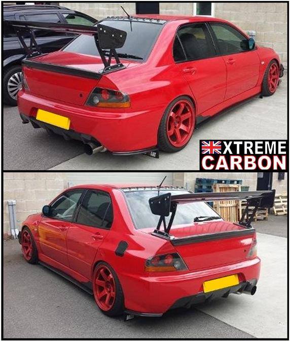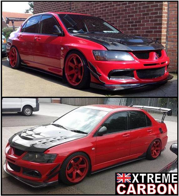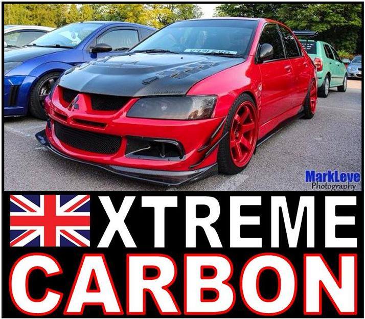 Evo 8 fitted with many Xtreme Carbon parts inc VR- front lip spoiler, side skirt extensions, side skirt spats, rear bumper extensions, ralliart mirrors & bumper ducts, etc