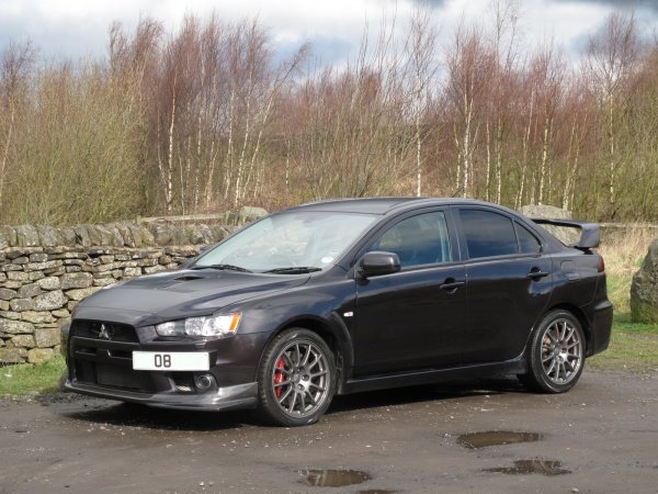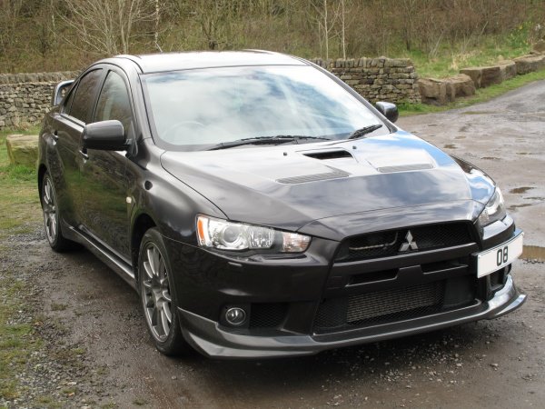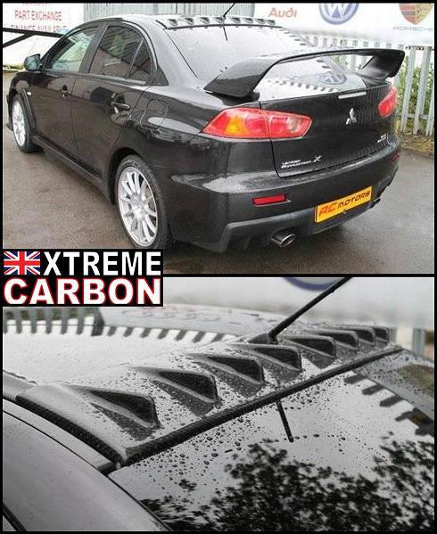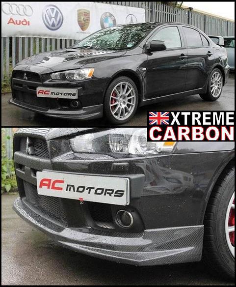 Evo X fitted with Xtreme Carbon V-style front lip spoiler and vortex generator
